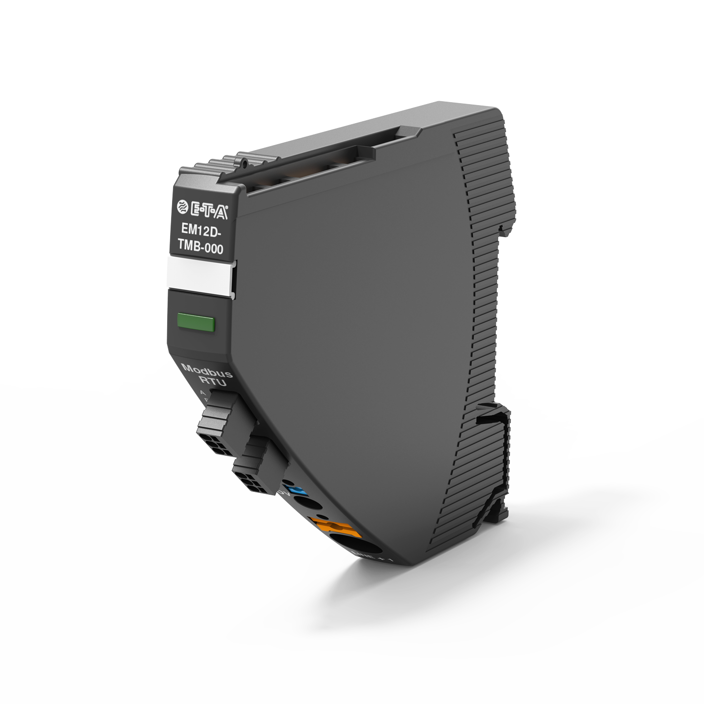 Das Einspeisemodul EM12D-T nimmt die DC 24 V Versorgungsspannung z. B. von einem getakteten Schaltnetzteil auf und verteilt diese an die angereihten intelligenten Sicherungsautomaten über den im REX12D-T integrierten Klappmechanismus. Die als Modbus-RTU Device ausgeführte Kommunikationsschnittstelle des EM12D-T ermöglicht eine Vielzahl von Diagnose- und Steuerbefehlen an einen übergeordneten Modbus-RTU Master der Steuerungsebene.