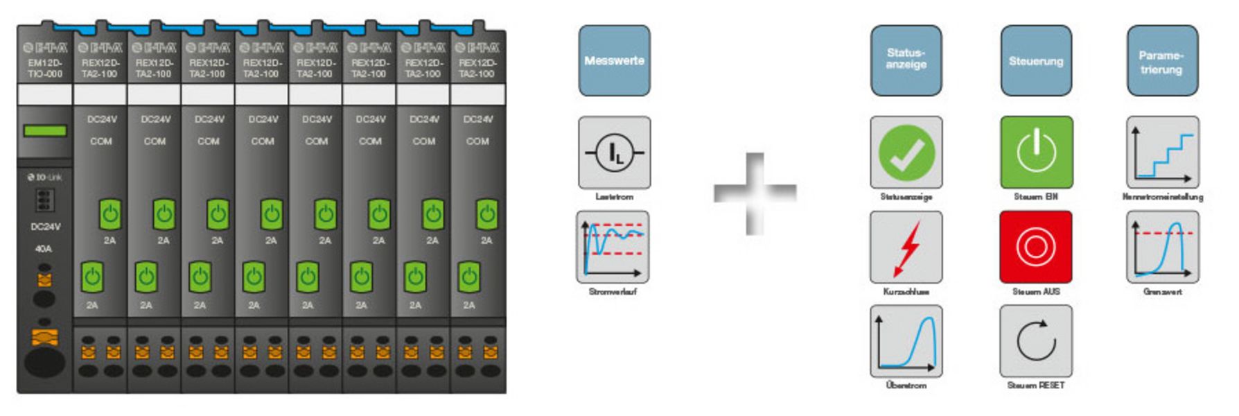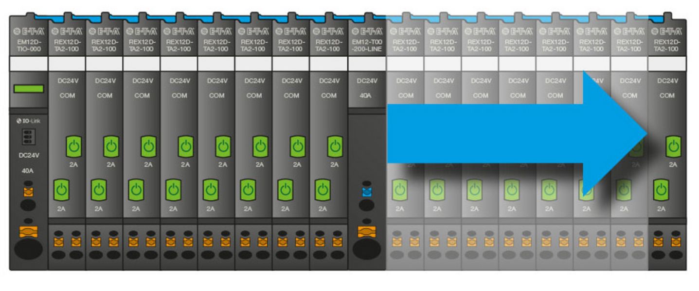 Das intelligente REX12D-System ist ideal auf die Anforderungen des Maschinen- und Anlagenbaus angepasst. Die kompakte Bauform, der modulare Aufbau, die innovative Verbindungstechnik und die Vielzahl von unterschiedlichen Geräten bieten einen deutlichen Vorsprung zu herkömmlichen Lösungen für die Absicherung Ihrer DC 24 V-Stromverteilung.